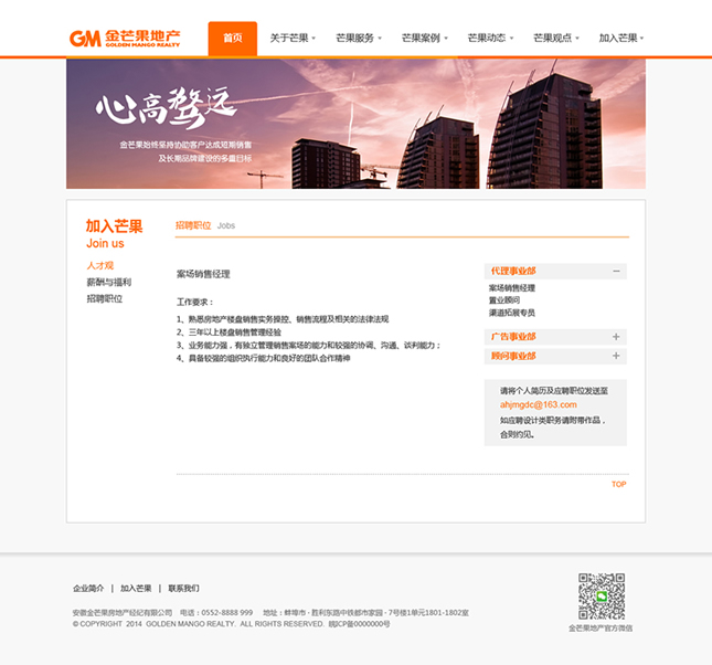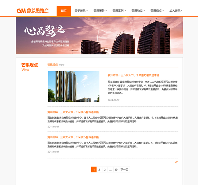 金芒果基于對中國房地產(chǎn)的執(zhí)著追求,憑借對市場營銷的激情創(chuàng)新,以完全經(jīng)過市場檢驗的專家團隊和對市場的敏銳天賦,大膽構思、執(zhí)著實踐、激情專注、科學分析,贏得了業(yè)主的廣泛認同和支持,并以優(yōu)異業(yè)績和服務質(zhì)量,被客戶譽為具實效、富激情、科學嚴謹?shù)膶I(yè)房地產(chǎn)服務商。