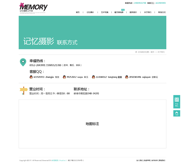 記憶視覺攝影有限公司(簡(jiǎn)稱:記憶攝影)記憶攝影正式成立于2008年,集頂尖攝影、造型妝容和后期特效專業(yè)力量于一體,是中國(guó)首批開創(chuàng)外景旅行式婚紗攝影的工作室之一記憶攝影一直秉承“一對(duì)一的精致拍攝”服務(wù)理念。在整個(gè)拍攝過程中專業(yè)的攝影師、化妝師都會(huì)至始至終跟隨客戶,顧客可以隨時(shí)和拍攝組進(jìn)行溝通和交流,不斷的創(chuàng)新獨(dú)特的拍攝方式為新人打造真正屬于自己的獨(dú)一無二的婚紗照片。做到真正的人性化,同時(shí)在更多程度上保證了照片的完美質(zhì)量,附加一份完美體驗(yàn)。